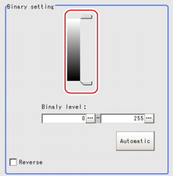 Specify the level for converting 256-grayscale images to binary images. Adjust the binary level so that the measurement object is converted to white pixels. You can also adjust the binary level so that only intermediate density is measured.